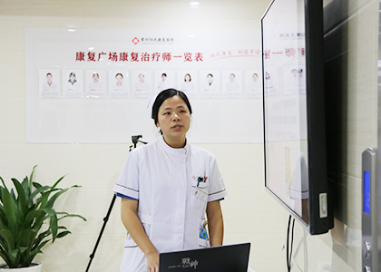 接着康复科汤云主任又进行了住院病人的防跌倒与安全转移技巧培训,由治疗师盛仪叶配合演示。