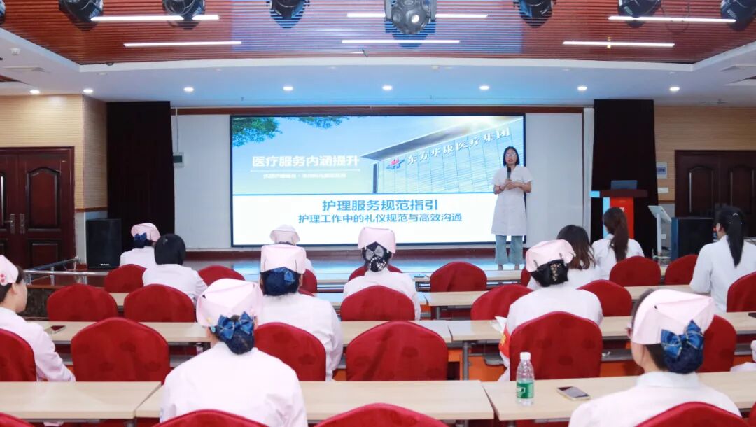 为进一步规范护理服务行为,提升护理服务质量,近日,常州阳光康复医院成功举办了“护理服务规范指引—护理工作中的礼仪规范与高效沟通”专题培训。旨在通过系统化学习,引导全体护士将“以患者为中心”的服务理念内化于心、外化于行。本次培训由东方华康集团礼仪培训老师、五病区护士长和三病区护士长共同授课,全院护理人员参加学习。