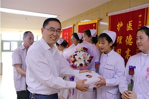 阳光康复医院陶荣院长在512当天,向医院全体护士表达节日的祝福,并送上礼品和鲜花。陶院长说:“康复需求的患者越来越多,医护人员工作量也在日增,希望这小小的礼物能够带给她们些节日的快乐,缓解一下紧张的情绪。也希望她们在岗位上更加尽职尽责,为患者更好地服务”!