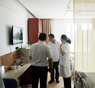 励建安教授在院领导及有关科室负责人的陪同下,参观了我院康复门诊、康复治疗广场及病房;在康复广场,励教授详细的询问了医院开展的康复项目,并针对不同个体了解了我院康复治疗方案等;随后,励教授来到六楼神经康复病区进行病房查看,仔细了解了患者在院康复治疗的基本情况,随后在二楼会议室进行了座谈。总院长李爱川、执行院长李岩、业务院长刘春蓉、医政管理总监孙瑛等参加了座谈会。