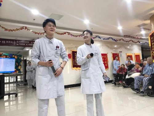 游戏中我们也邀请了患者上台唱歌,患者在唱歌时还特地的感谢了我院的医护人员和康复治疗师,“我不太会说话,就随意说两句,刚入院的时候我是躺着进来的,经过几个月的康复治疗,现在也能推着轮椅走一走了,新一年我的愿望是能够站起来,回归家庭,回归社会”。看似简短朴实的话语,却道尽了身为患者的心酸,但好在如今在常州阳光康复医院康复有了起色,我们也万分欣慰。新的一年,我们会更加倍努力,用更好的态度、更好的服务、更好的康复技术去服务每一位病人,希望他们在我院都能得以康复,回归家庭,回归社会~