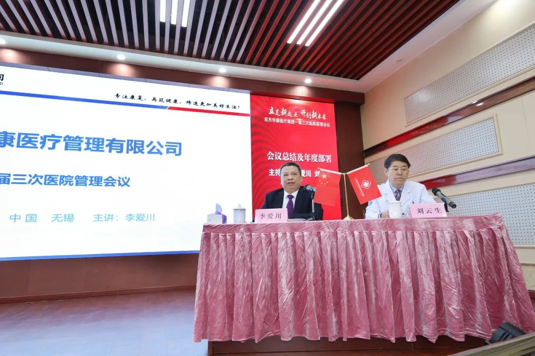 立足新起点,开创新未来,最后,东方华康医疗集团总裁、总院长李爱川先生总结说,这是一次振奋人心、鼓舞士气、高质量的大会;是一次团结奋进、共谋发展的大会。李爱川总裁、总院长从十八个方面对2020年的工作提出了具体要求,集团各医院、各条线、各科室要进一步认真学习此次工作会议精神,做到上传下达,并以此为指引和动力,认真宣传贯彻落实,以饱满的热情、全新的姿态,努力开创医院各项工作新局面!为为更多需求人群提供安全、有效、优质的医疗康复、医养服务而奋斗!