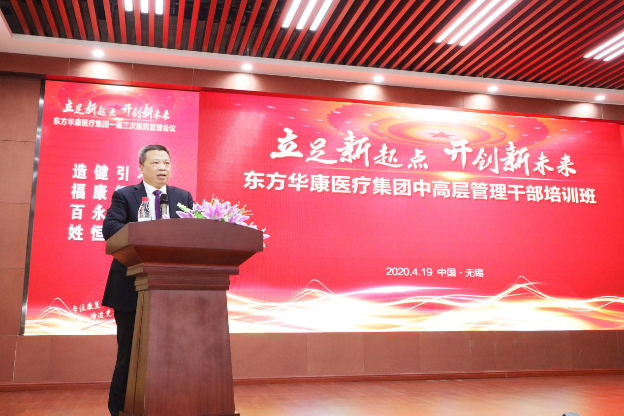 4月19日,“东方华康医疗集团中高层管理干部培训班”隆重开班,特别邀请无锡市康复医院原院长党英杰,东方华康医疗集团总裁、总院长李爱川莅临培训班现场授课,东方华康医疗集团中高管理层全部参加。培训班由东方华康医疗集团总裁第一助理、无锡国济康复医院/护理院刘云生院长主持。