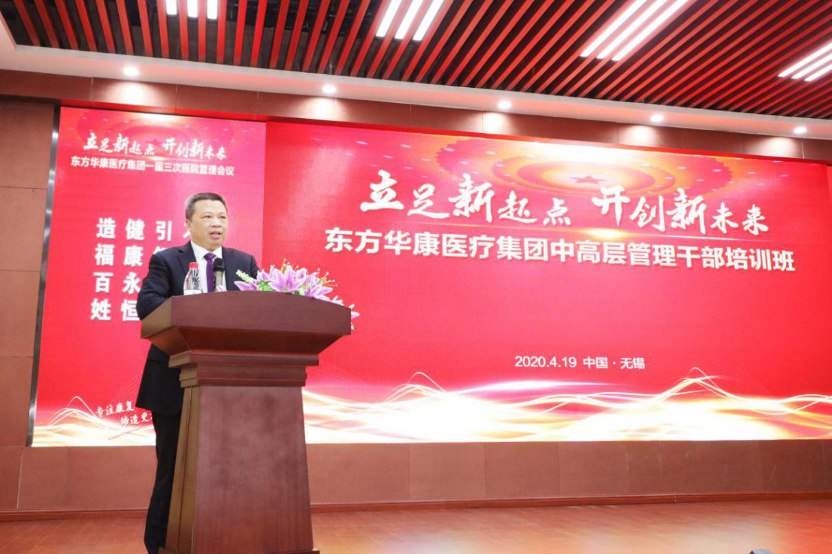 4月19日,“东方华康医疗集团中高层管理干部培训班”隆重开班,特别邀请无锡市康复医院原院长党英杰,东方华康医疗集团总裁、总院长李爱川莅临培训班现场授课,东方华康医疗集团中高管理层全部参加。培训班由东方华康医疗集团总裁第一助理、无锡国济康复医院/护理院刘云生院长主持。